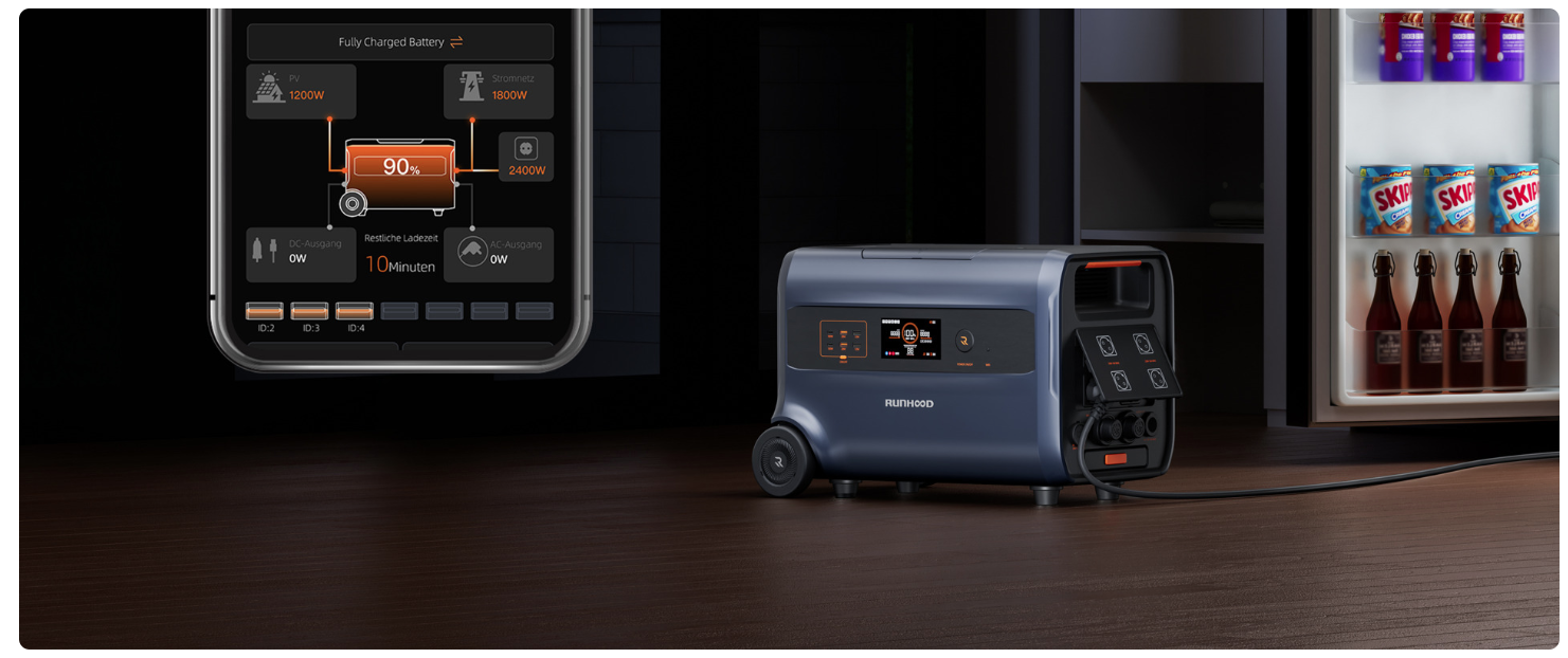 3 IN 1 Balkonkraftwerk mit Speicher | Powerstation | PV-Speicher | Home-Backup | RUNHOOD F2400 mit 2400Wh | 2400W