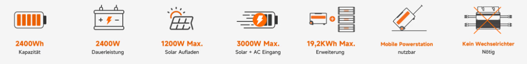 Produktinformationen "3 IN 1 Balkonkraftwerk mit Speicher | Powerstation | PV-Speicher | Home-Backup | RUNHOOD F2400 mit 2400Wh | 2400W"