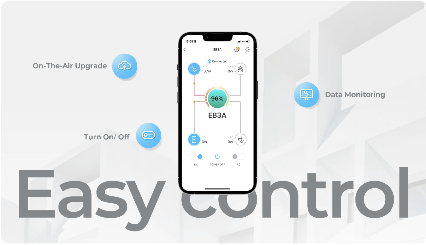 Die intuitive APP bietet ein komfortables Erlebnis, das Ihnen einen schnelleren Zugriff auf die EB3A über Bluetooth in einem Umkreis von 10 m ermöglicht.