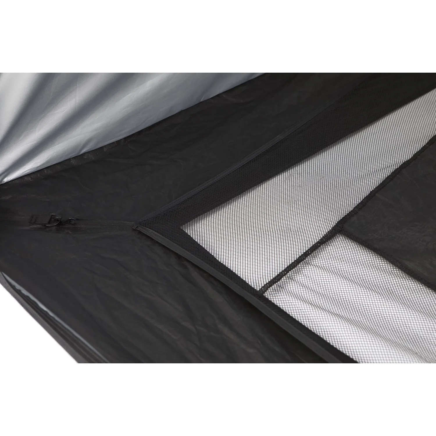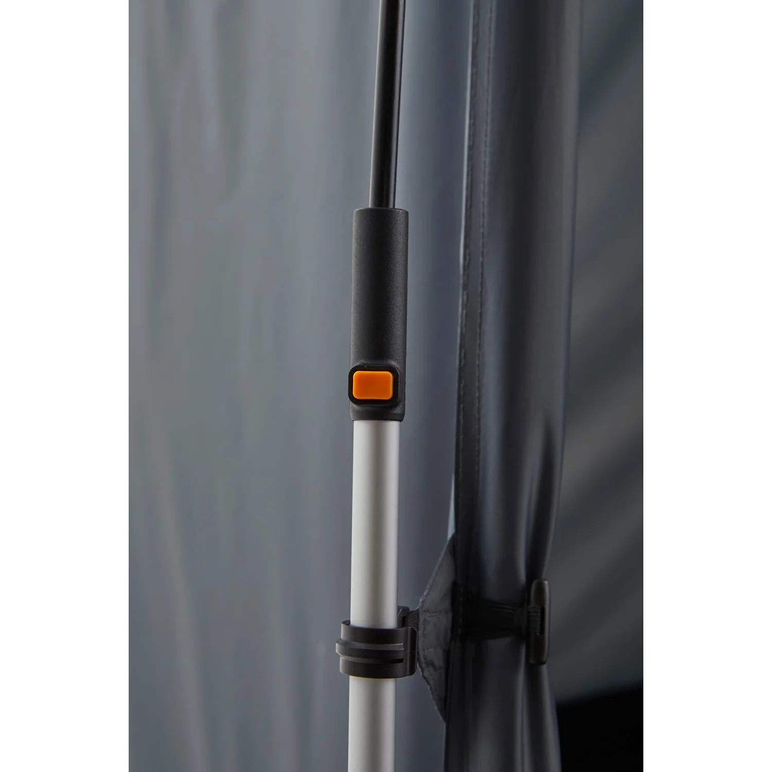 Dank der blickdichten Beschichtung wird Ihre Privatsphäre zu jeder Zeit bewahrt. Der Boden besteht aus einem Netzstoff, welcher abnehmbar ist. Zudem verleiht das äußere Gestänge einen sicheren Stand.