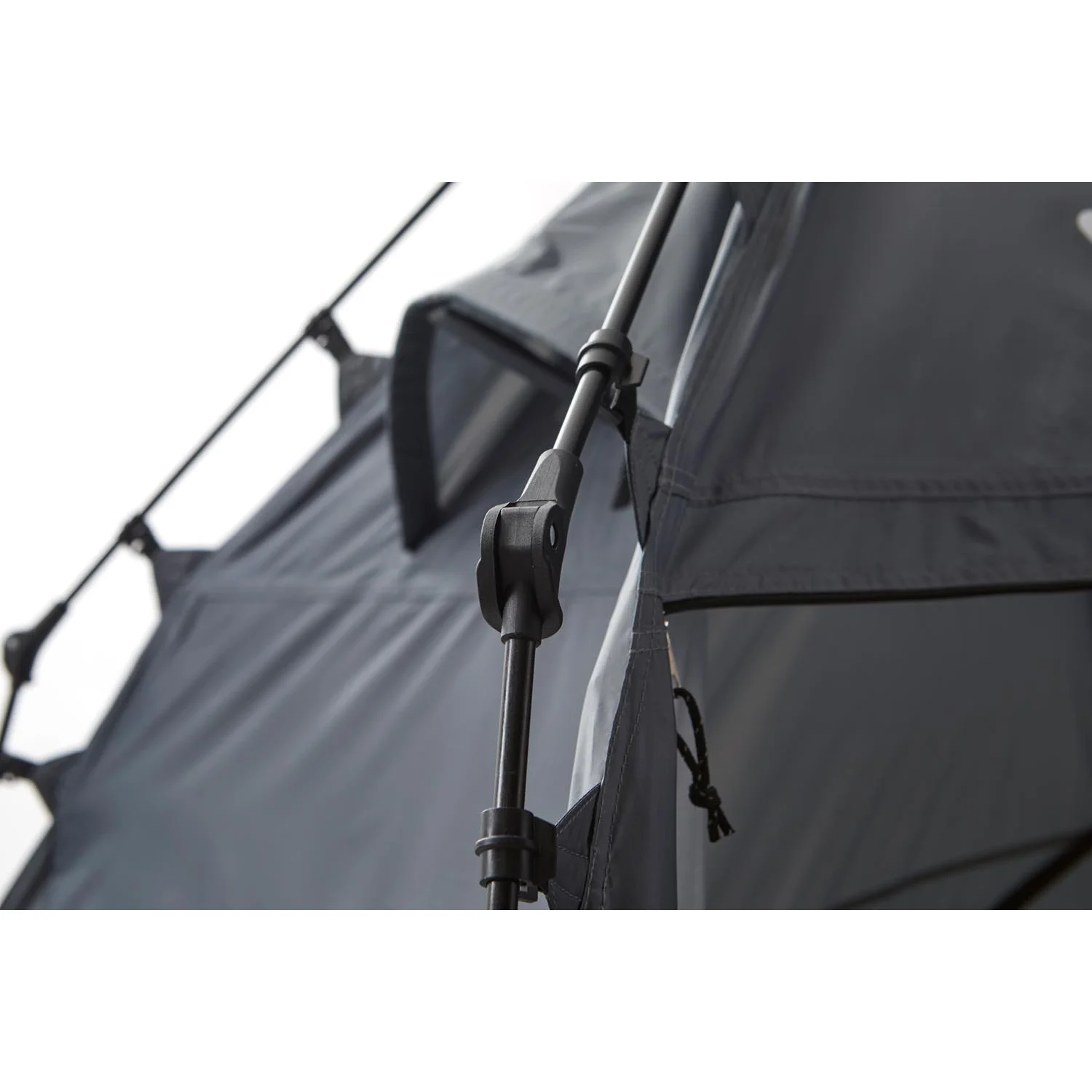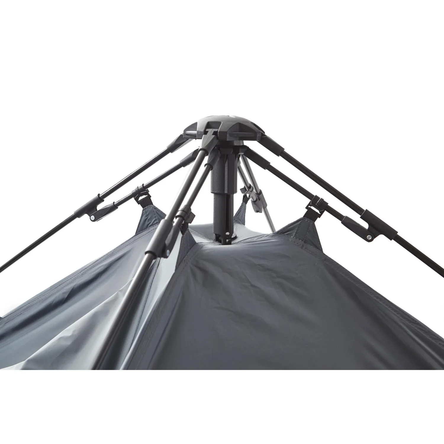 Das Zelt lässt sich sehr einfach und schnell auf- und abbauen und ist im eingeklappten Zustand besonders platzsparend.