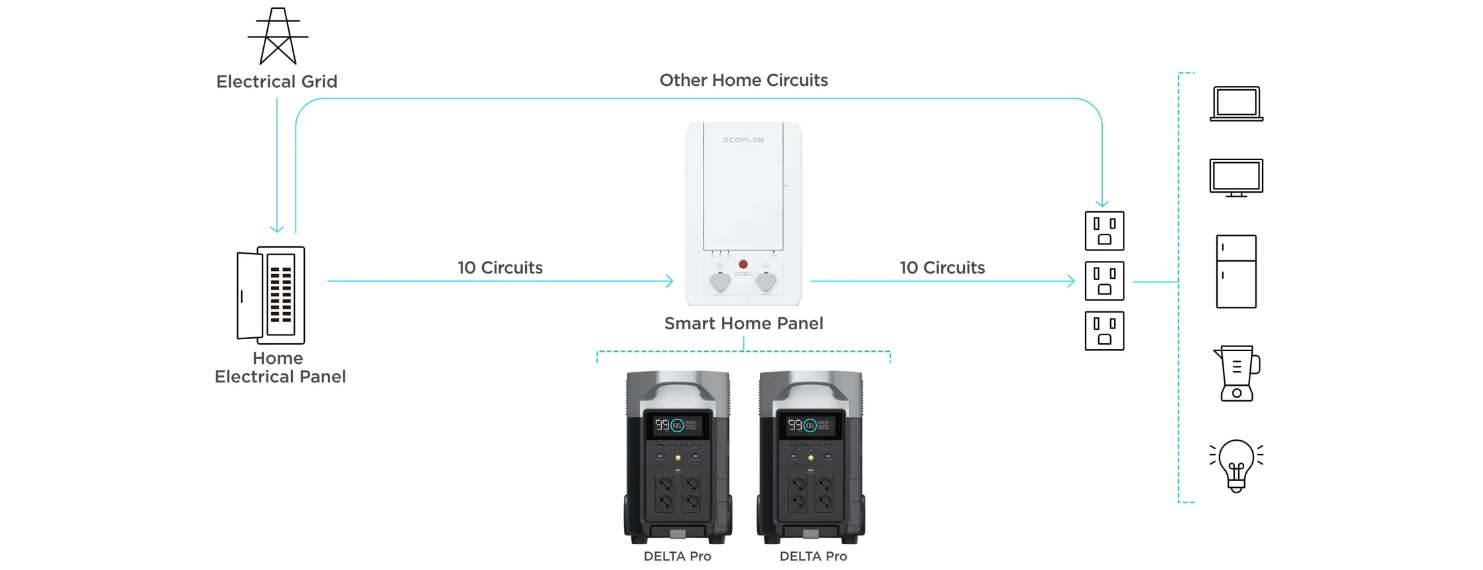 Das neue EcoFlow Smart-Home-Modul ist das Herzstück des DELTA Pro Heim-Akku-Ökosystems. Bis zu zwei DELTA Pro-Einheiten können in 10 Heim-Stromkreise integriert werden. Jedes DELTA Pro kann mit zusätzlichen Akkus, Solarpanelen oder intelligenten Generatoren verbunden werden, sodass Sie bei Stromausfällen eine unterbrechungsfreie Stromversorgung mit intelligentem Energiemanagement für Ihre kritischen Lasten und niedrigere Energiekosten erhalten.