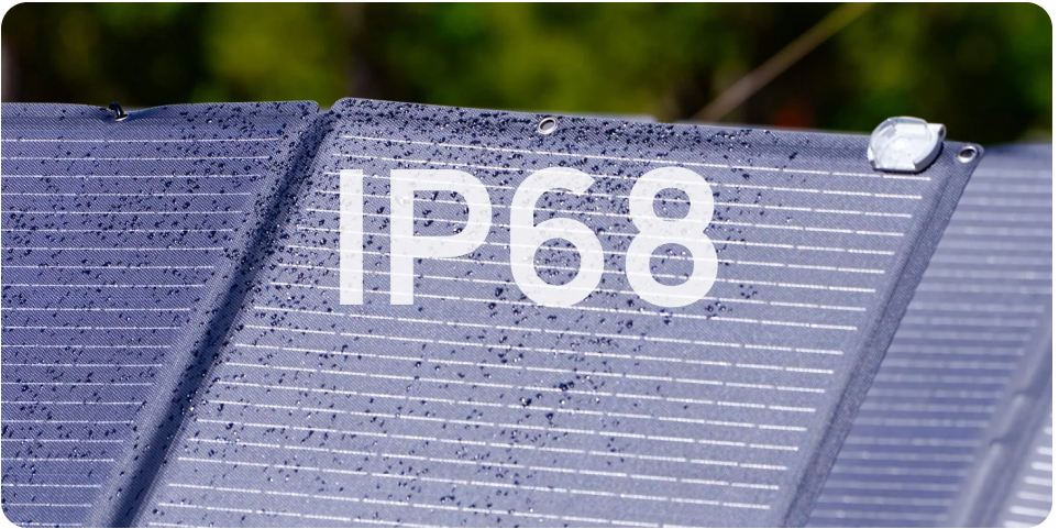 Das EcoFlow 160W-Solarpanel ist staub- und wasserdicht nach IP67. Dank seines nahtlosen, einteiligen Designs eignet es sich ideal für Outdoor-Aktivitäten wie Camping und Wandern. Ein ETFE-Film bietet zusätzlichen Schutz gegen UV-Licht und verlängert die Lebensdauer des Produkts.