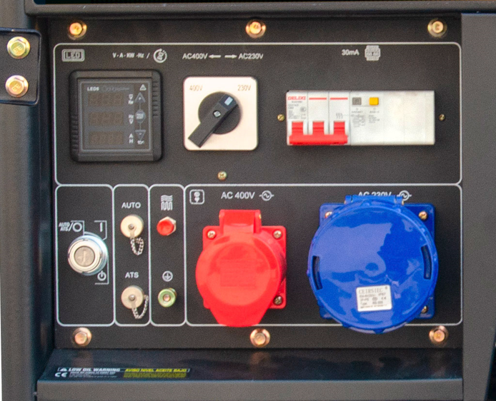 Das Aggregat lässt sich mit einem Elektrostarter einschalten und kann daraufhin mit 230 V und 400V betrieben werden.