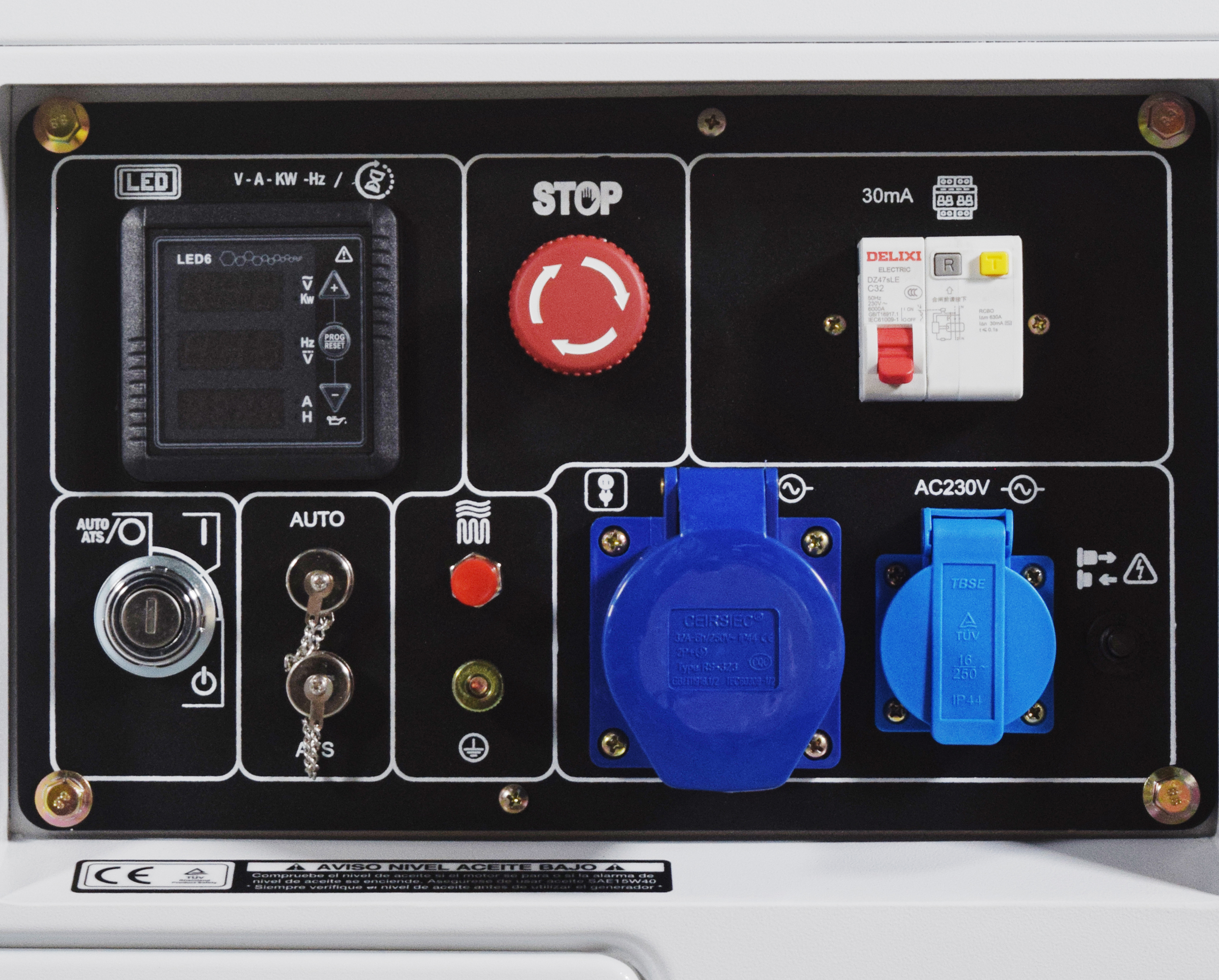 Das Gerät lässt sich mit einem Elektrostarter einschalten und kann daraufhin mit 230V betrieben werden.
