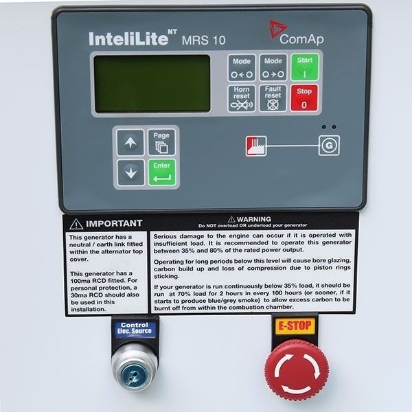 Die integrierte Multifunktionsanzeige (MRS10) beinhaltet eine Spannungs- und Stromanzeige, sowie eine Schutzanzeige des Generators, einen Stundenzähler, eine Batterieladeanzeige und eine Anzeige der Arbeitsstunden des Motors. Wird zusätzlich eine ATS Box an die dafür vorgesehene Vorrichtung angeschlossen, ist ein automatischer Start des Industriestromaggregats möglich, sobald die Hauptstromversorgung unterbrochen wird.