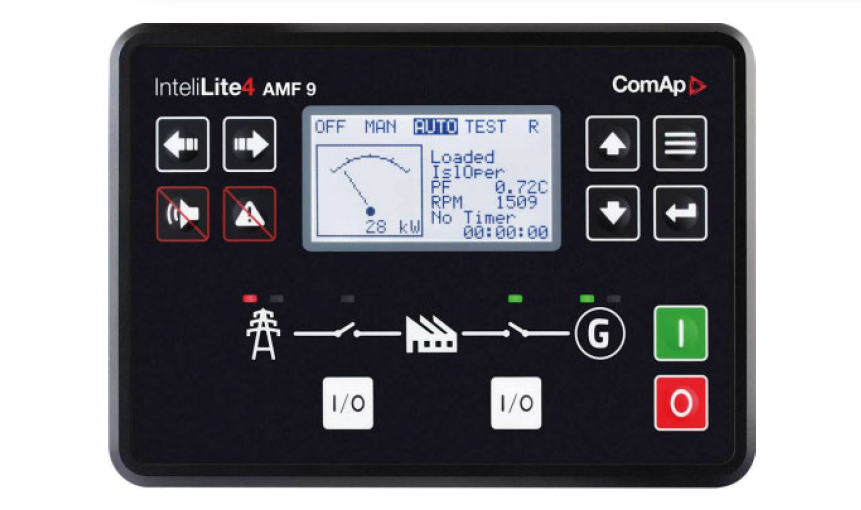 - Das moderne InteliLite4 AMF9 LED-Display von ComAp unterstützt die Überwachung, Messung und den Schutz von Motor und Generator. Es handelt sich um eine langlebige Back-up-Einheit für uneingeschränkte Kontrolle, die folgende Systeme unterstützt: Modbus Standard, Modem, RS232, RS485, USB und Internet.