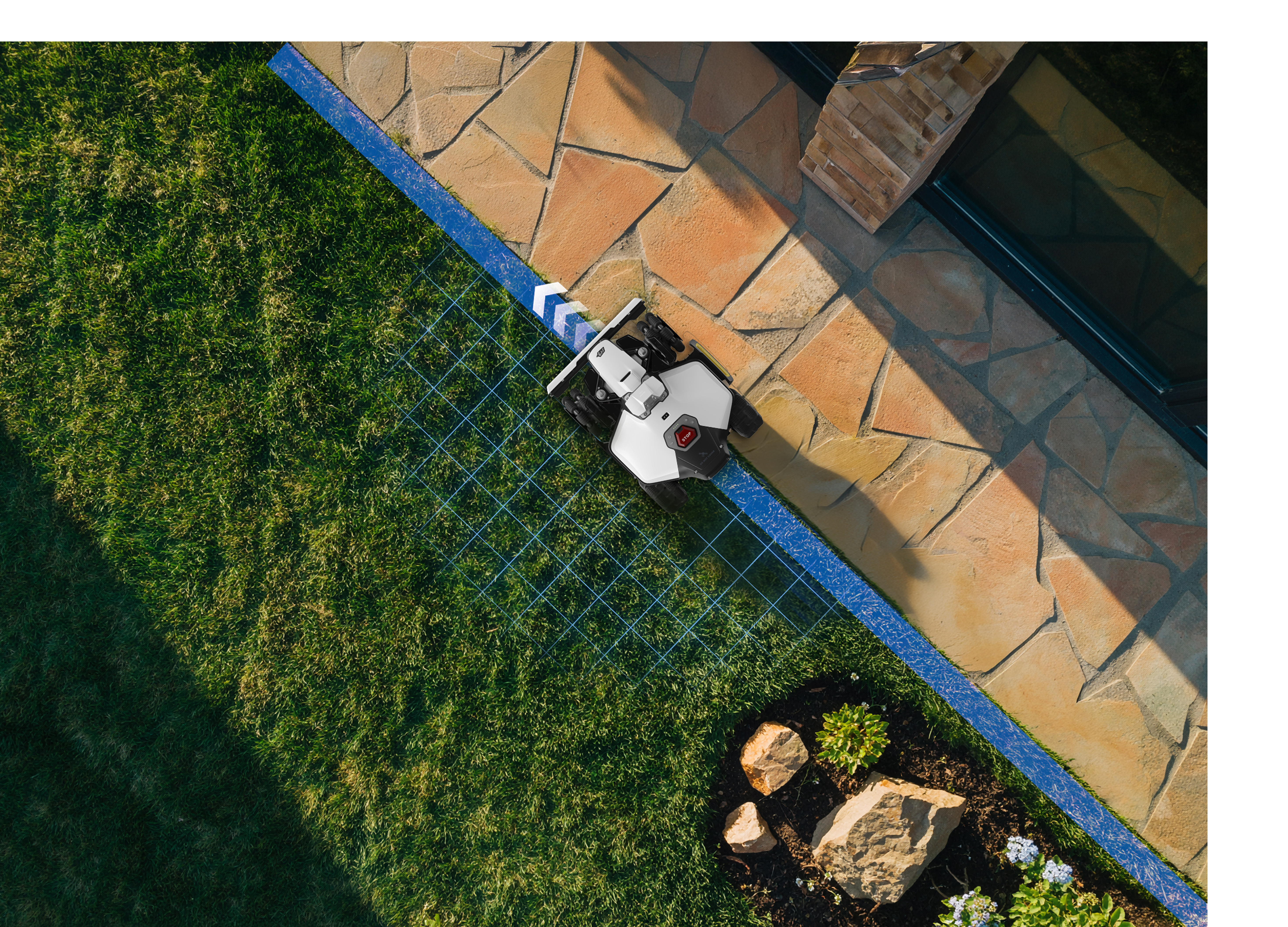 Ausgestattet mit dem leistungsstärksten Allradantrieb, meistert er selbst extreme Steigungen von bis zu 80 % (38°) mühelos. Dank der automatischen Kartierung mit UltraSense KI Vision, sowie seiner Tri-Camera-Vision, analysiert er Ihr Grundstück präzise und passt sich intelligent an.