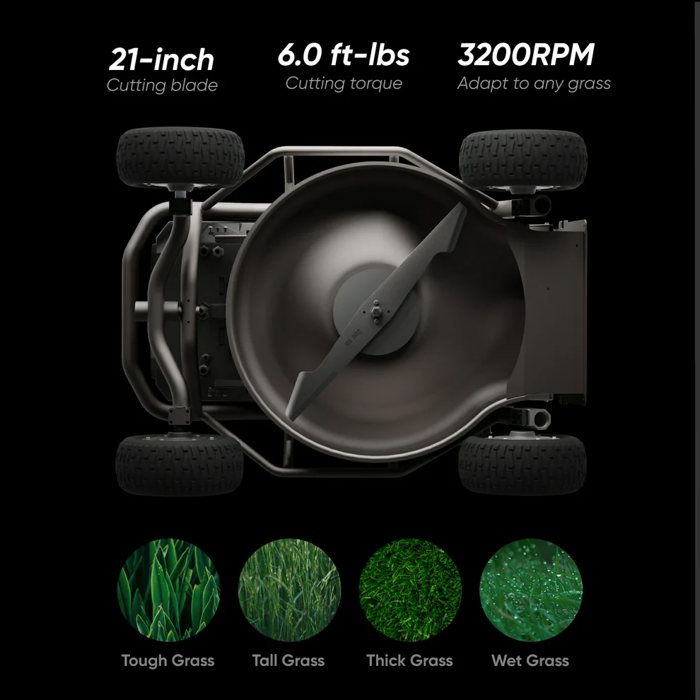 Dank RC-Fernsteuerung mit bis zu 400 m Reichweite lässt sich der Mäher präzise manövrieren – auch in schwer zugänglichen Ecken. Der kraftvolle 18 Ah LiFePO₄-Akku liefert bis zu 2,25 Stunden Laufzeit, während das robuste Fahrwerk selbst Steigungen bis 75 % (mit Spezialreifen bis 85 %) meistert.