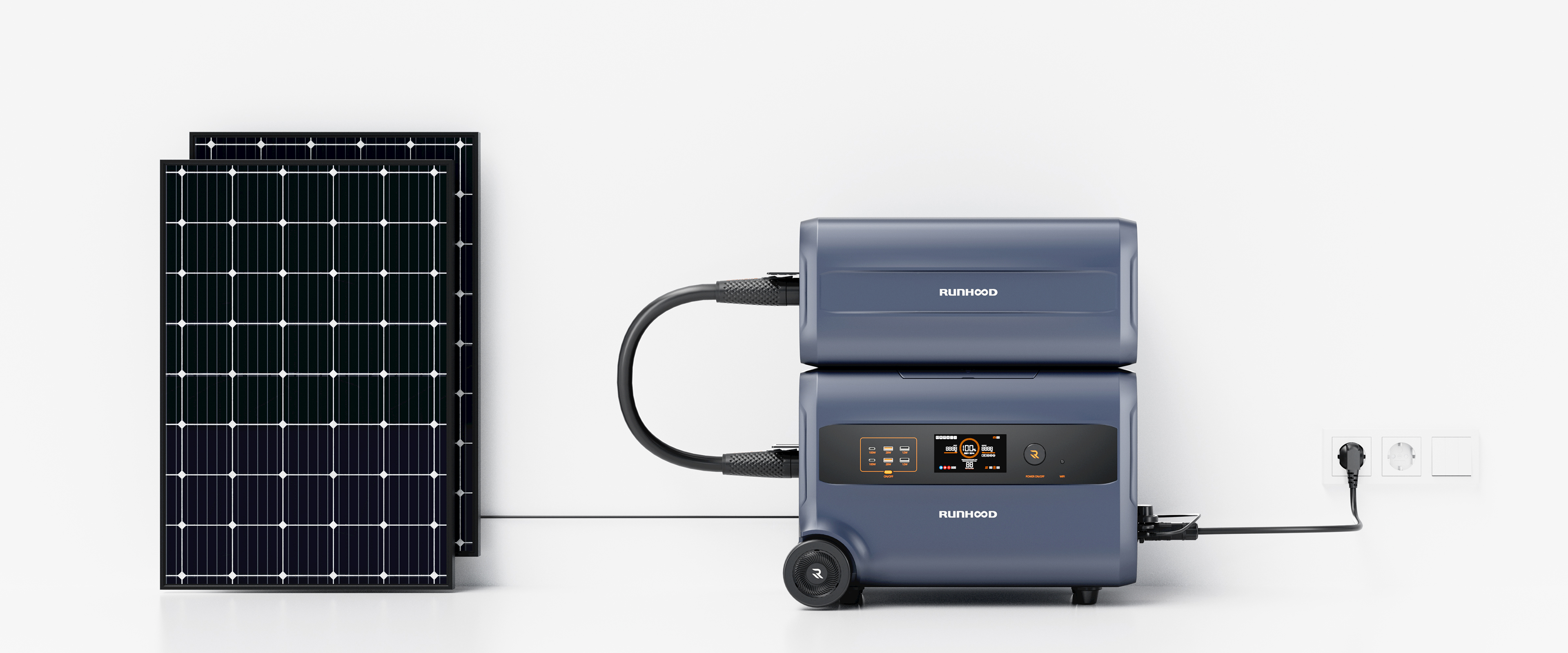 Die B2400 ist die Erweiterungsbatterie zu der F2400 von Runhood. Mit bis zu 7 Erweiterungsbatterien können Sie so die bestmögliche Leistung von 19,2 KWh erreichen.
